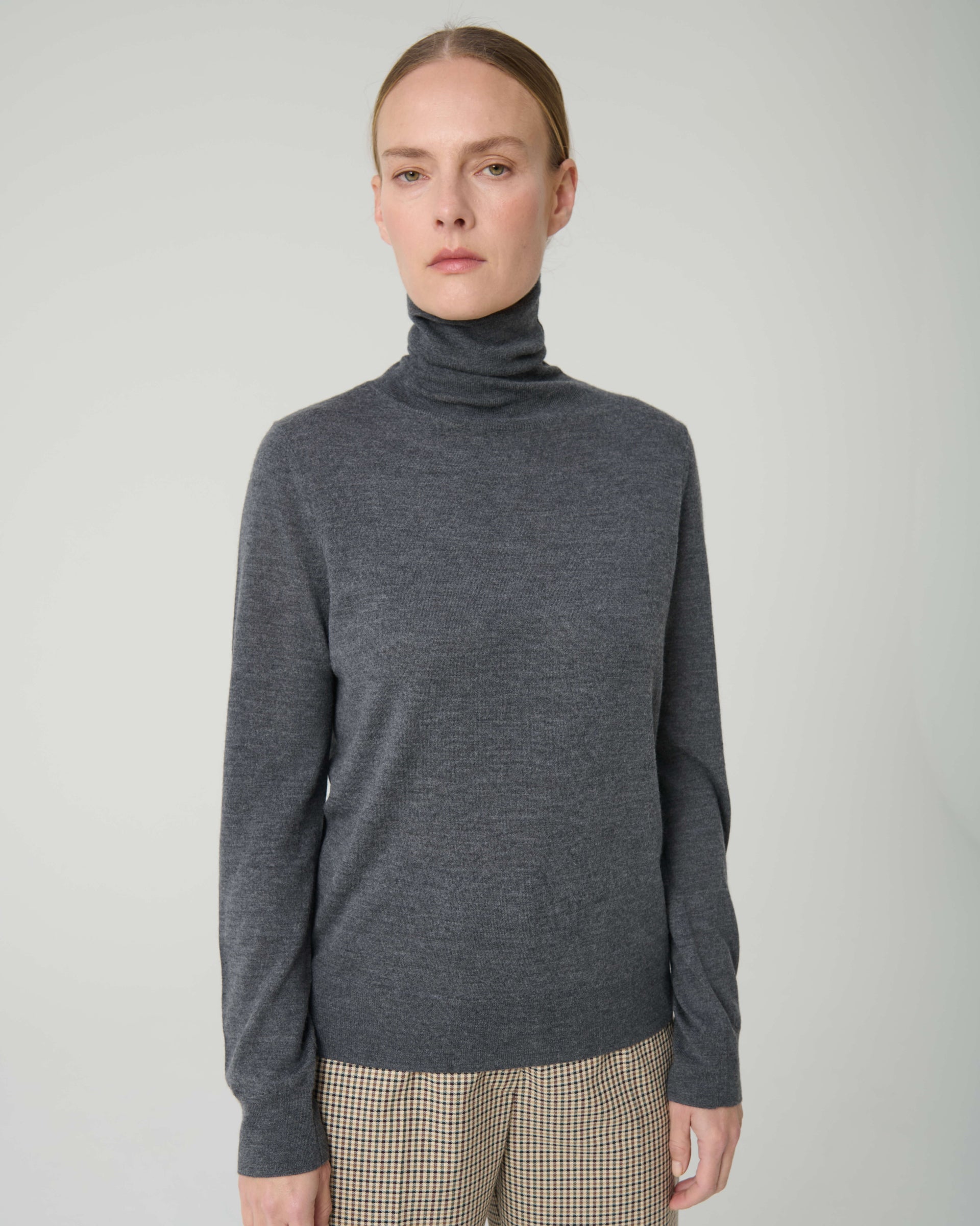 Realizzato in un lussuoso mix di lana, seta e cashmere, questo raffinato pullover è il capo perfetto per il guardaroba invernale femminile. Elegantemente decorato con il monogramma Beatrice .b sul retro, presenta una vestibilità regolare, collo alto e maniche lunghe.